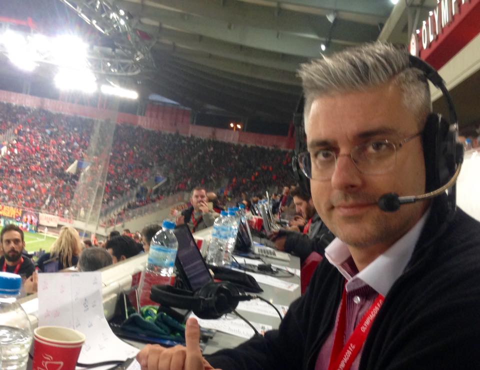 Ο έμπειρος ρεπόρτερ της ΕΡΤ μετέφερε στους ακροατές το κλίμα νίκης του Ολυμπιακού στο Άμστερνταμ